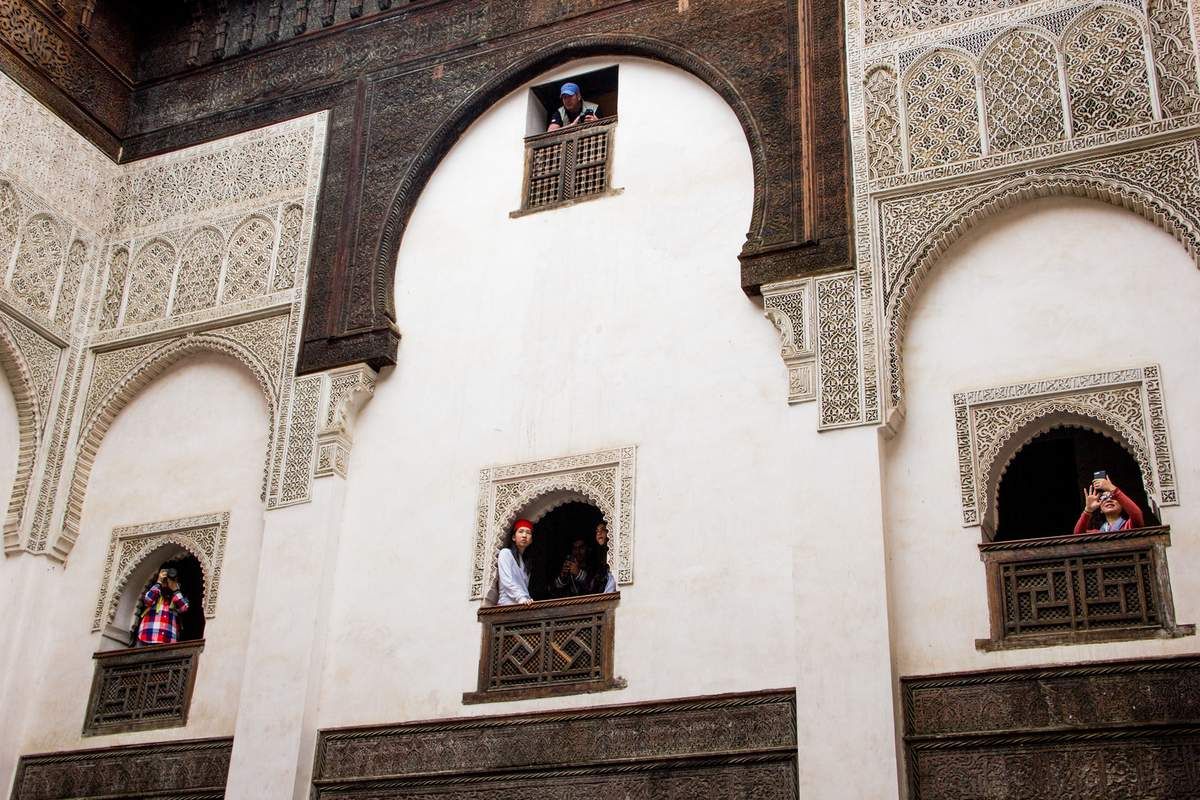 Autres splendeurs à Fès (touristes se faisant photographier dans la medersa) Publié le 8 mai 2018 par Blaise Emmanuel